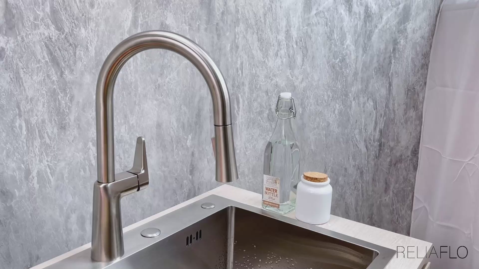 • Two setting pull-down sprayer (spray or stream function).